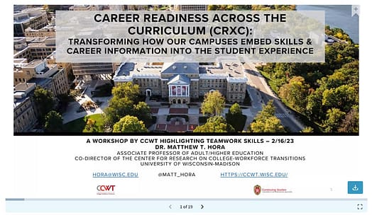 To learn more about Dr. Hora’s career readiness research, go to https://ccwt.wisc.edu/applied-research/career-readiness-across-the-curriculum/.