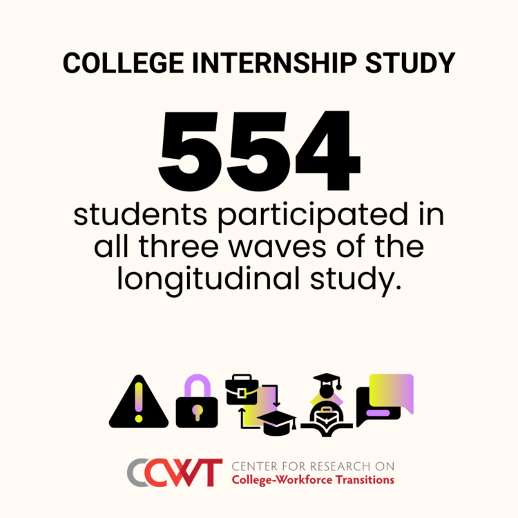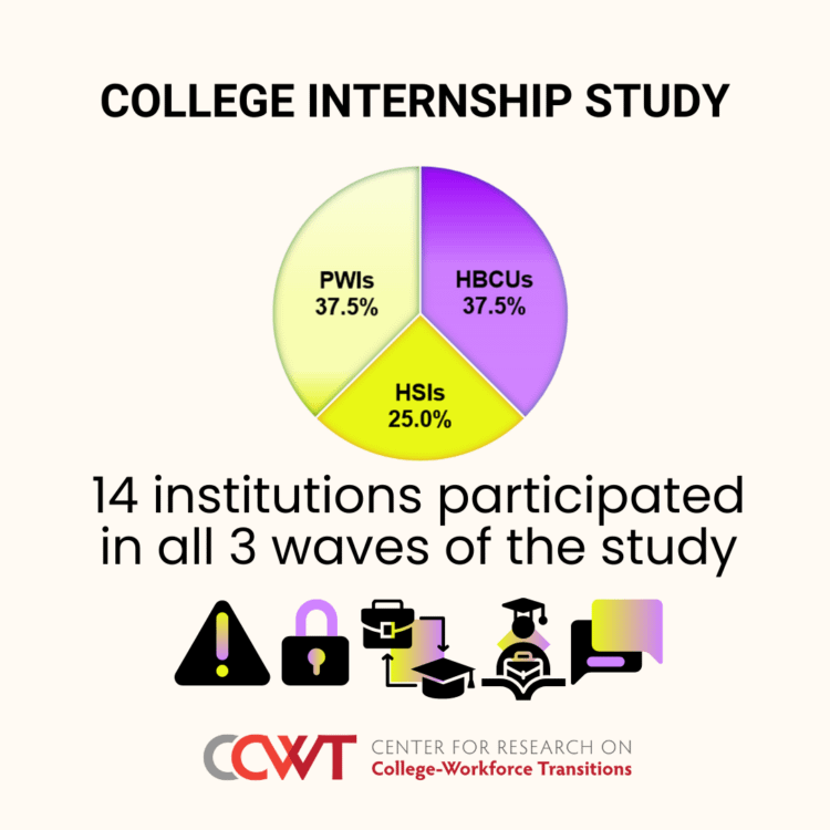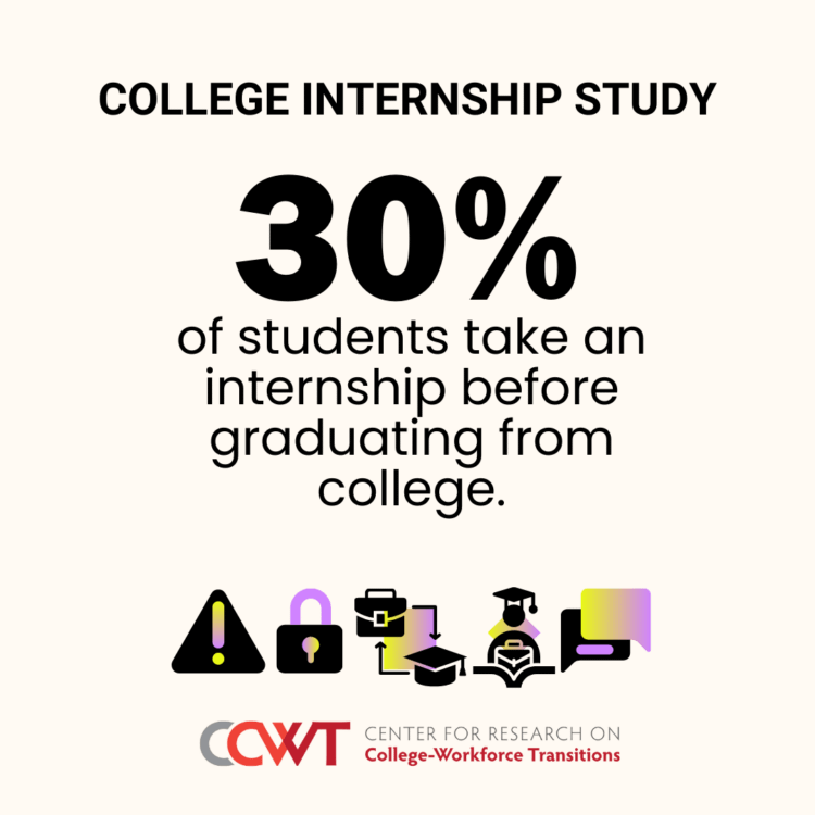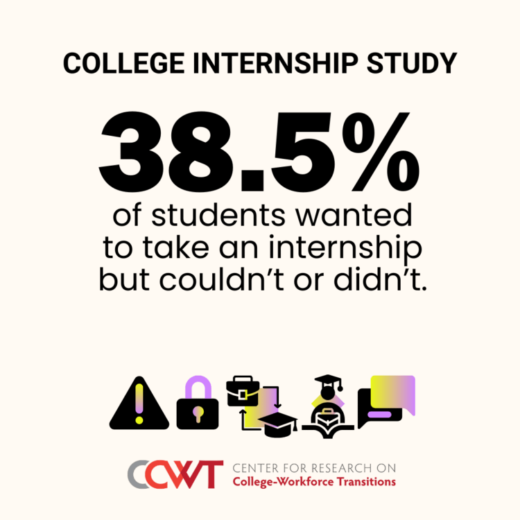 To shed light on these critical questions, CCWT launched the longitudinal College Internship Study in 2018. This study was groundbreaking in that it was the first to focus on issues of equitable access, program structure, and student voices. We documented obstacles to internships and other indicators of internship quality. this research helps. Collectively, our work identified gaps in students’ access to high quality college internships , showed that students at two-year institutions face significant challenges balancing heavy course loads with work commitments and lack of information about securing internship opportunities, and surfaced disproportionate barriers faced by historically underrepresented students (e.g., first-generation students, students from lower socioeconomic backgrounds) at personal and structural levels which impact decision-making regarding whether to pursue internship opportunities (e.g., Jang-Tucci et al., 2024; Hora et al., 2023; Song & Hora, 2024; Thompson et al., 2021).
