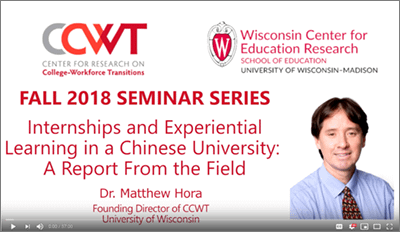 In this talk Dr. Matthew Hora reported preliminary findings from a recent trip to Tianjin, China where he spent 2.5 weeks conducting a mixed methods study of the relationship between internship program design and student outcomes. Drawing on survey, focus group, and interview data, Dr. Hora provided a comparative and critical analysis of internship programming in China and the US, with a focus on students’ experiences in their internships.