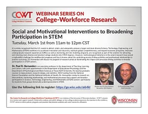 CCWT regularly hosts webinars that are organized around specific topics where staff and students speak with scholars active in the fields of higher education, workforce development, and related topics.