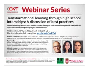 Join the leadership and educators from Big Picture Learning for a discussion of best practices for supporting transformational learning through high school internships.