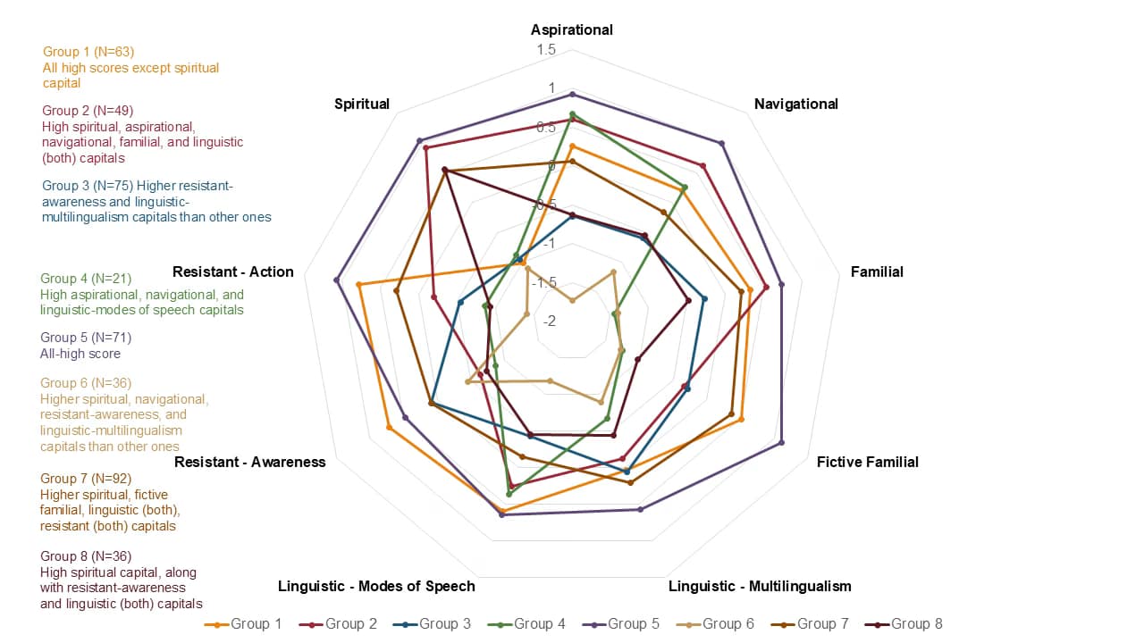 Based on the survey results and the NCA Project’s cluster analysis on college students’ cultural wealth, this page will identity the user’s cultural asset profile, and provide information on how they are related to other academic and career characteristics and what strengths stand out in their profile.