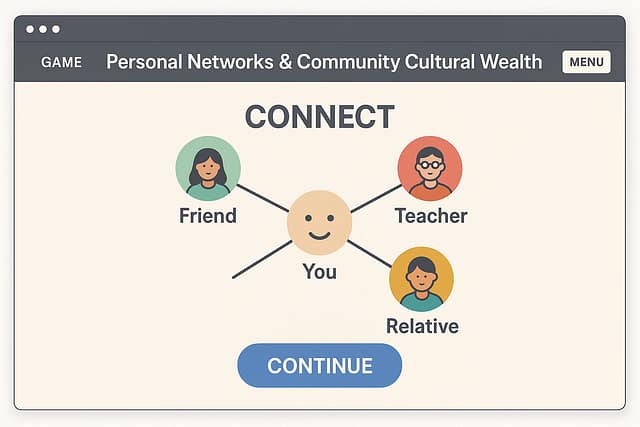 This page is under construction. This page will contain an interactive tool where users can learn core Community Cultural Wealth concepts and reflect what CCW they have cultivated through their social network.