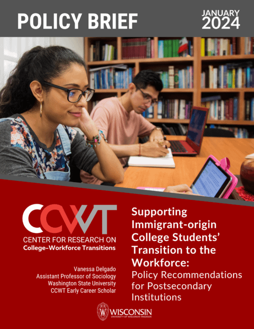 Delgado, V. (2024). Supporting Immigrant-origin College Students’ Transition to the Workforce: Policy Recommendations for Postsecondary Institutions. Early Career Scholars Program. Center for Research on College-Workforce Transitions. University of Wisconsin–Madison, Division of Continuing Studies.