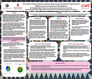 “Our HMoob American College Paj Ntuab” is a qualitative research study conducted by the Center for College-Workforce Transitions (CCWT) in partnership with the HMoob American Studies Committee (HMASC), a University of Wisconsin-Madison (UW-Madison) student activist initiative, to examine the sociocultural and institutional factors influencing HMoob American college experiences at UW-Madison. We found that the HMoob American students who participated in our study often reported feeling unwelcome or excluded at UW-Madison. Participants stated that they felt the campus community did not have any knowledge of HMoob history and culture, which put HMoob American students in the position of educating their peers and professors on who the HMoob are. Additionally, participants reported experiencing macro- and/or micro-aggressions in classrooms, residence halls, and on the streets near campus. Our participants also reported feeling unwelcome in certain schools, buildings, and professional student organizations, which has significant implications on HMoob American students’ academic majors, future career plans, and professional social networks. In contrast, the spaces in which our participants stated that they felt most comfortable, safe, and welcome were student support programs, race-specific student organizations, and HMoob specific classes. Participants described these spaces as places where they were able to cultivate their ethnic identity and find mentorship and other support systems.