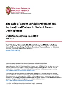 Mun Yuk Chin, Chelsea A. Blackburn Cohen, and Matthew T. Hora (2018). The Role of Career Services Programs and Sociocultural Factors in Student Career Development. WCER Working Paper No. 2018-8. Wisconsin Center for Education Research. University of Wisconsin-Madison