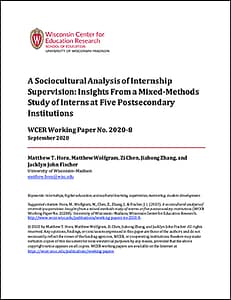 Abstract: Internships are widely promoted extra-curricular experiences that can have positive impacts on student outcomes, yet how specific elements of internships contribute to these outcomes and facilitate learning is understudied. In this sequential mixed-methods study, we use sociocultural learning theory to interpret data from surveys (n = 435) and focus groups (n = 52) with students at five postsecondary institutions. After stepwise linear regression analyses indicated that supervisor behaviors were significantly associated with intern satisfaction and career development, analyses of qualitative data revealed features of positive (clear communication, availability, feedback) and negative (unavailability, inattention to learning) aspects of supervision. These results highlight the value of legitimate peripheral participation in internships, and the need for colleges and employers to carefully design and monitor these pedagogic spaces.