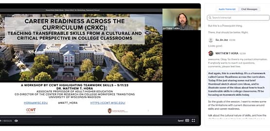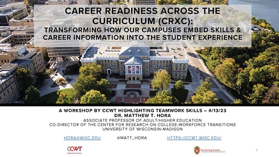In 2018, Associate Professor of Adult & Higher Education Matthew Hora developed a 7-week online faculty development course that led faculty through the history of the skills discourse and problems with generic notions of how skills like communication, critical thinking, and self-regulated learning are deeply shaped by the professions, race/ethnicity, and gender. Participants were introduced to the “Skills as Cultural Scripts” approach to embedding these skills into course syllabi, lesson plans, or even in campus-wide strategic plans in a way that models sociocultural and equity-centered theories of learning.
