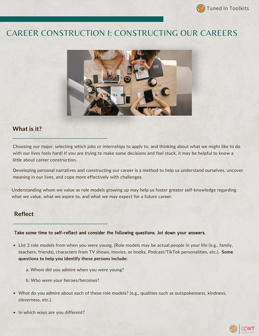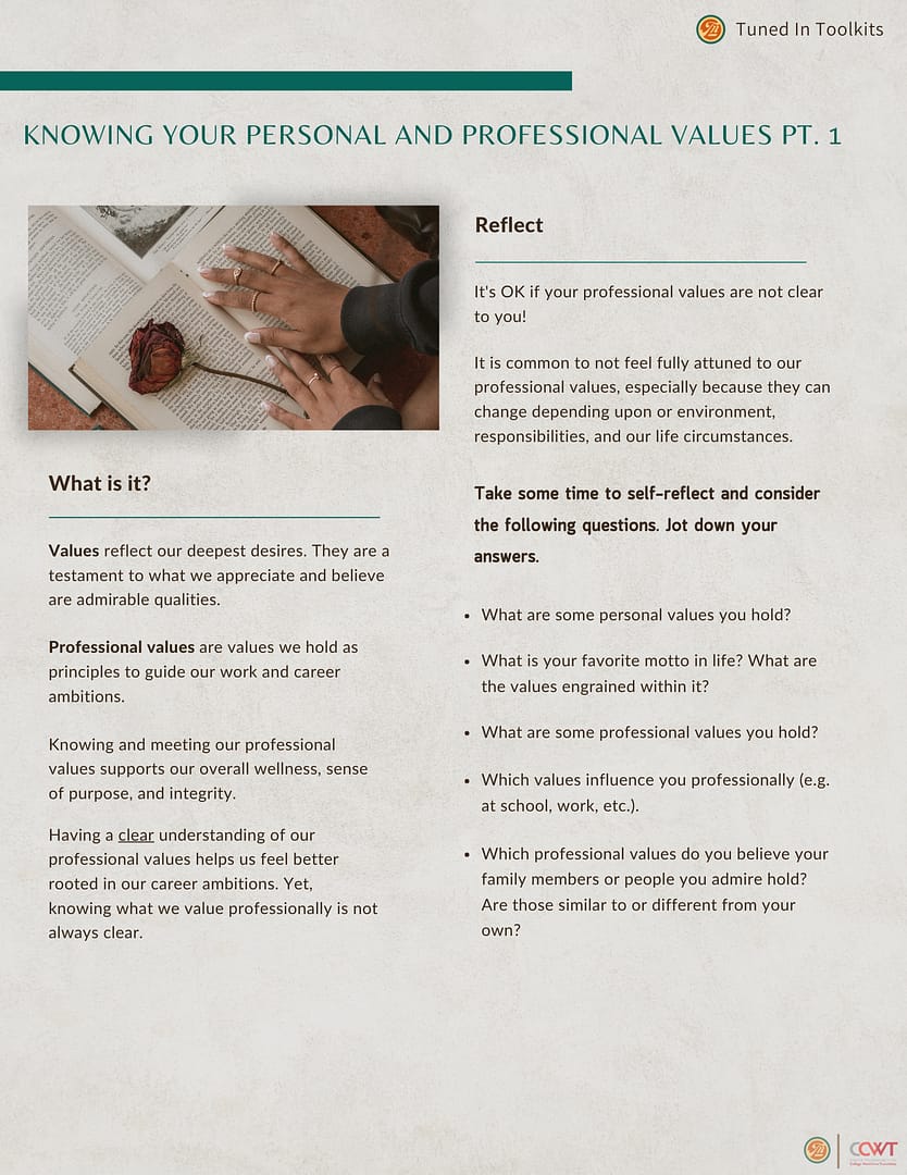 Our Career & Wellness Resources are designed for students to broaden their understanding of career development, entering and navigating the workforce, wellness management, and more. We encourage readers to save and/or print as many of these resources as they’d like for their future reference.